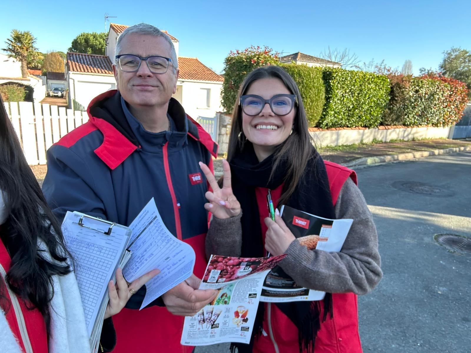 Après la théorie, place à la pratique : 2 journées de prospection ! Les élèves sont donc allés sur le terrain, seul ou en binôme, toujours encadrés par un commercial, sur un secteur géographique délimité en amont, sur Royan et environs. Ils ont frappé ou sonné aux portes pour trouver de nouveaux clients et proposé les produits de Noël. L’opération a connu un très vif succès : 500 catalogues tamponnés, pas loin de 80 commandes passées…